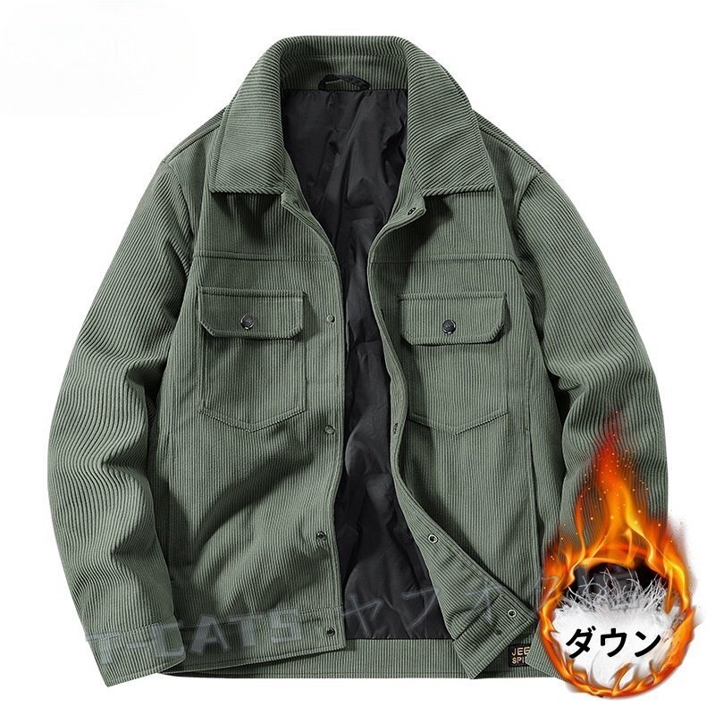 ☆新品ダウンジャケット コーデュロイ ダウンコート メンズ アウター ショートコート アウトドア 緑色 サイズ選択可 收藏