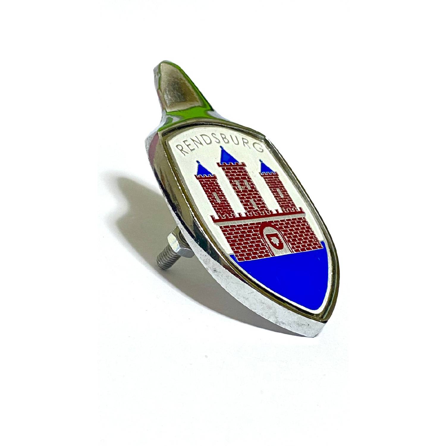 フロントフード バッジ クレスト メダリオン エンブレム クロームメッキ スチール製 ベース プレート付き VW OLDENBURG 赤レンガ フォルクスワーゲン ビートル T1 年 1951年~1963年式