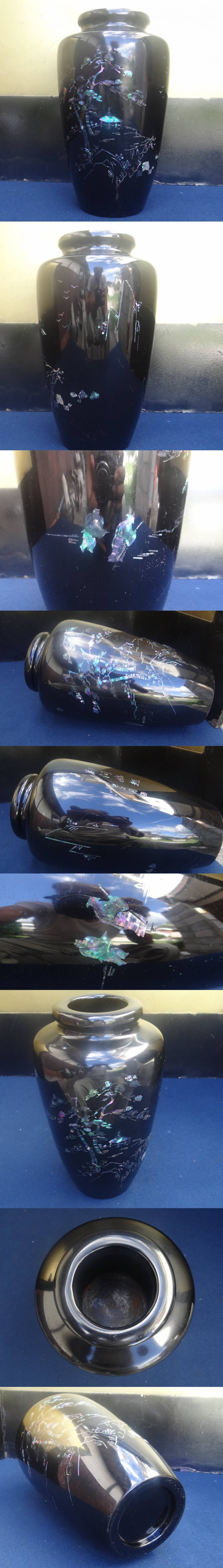 最高級品!長崎青貝 螺鈿塗り込め 木製輪島真塗り 花瓶 收藏
