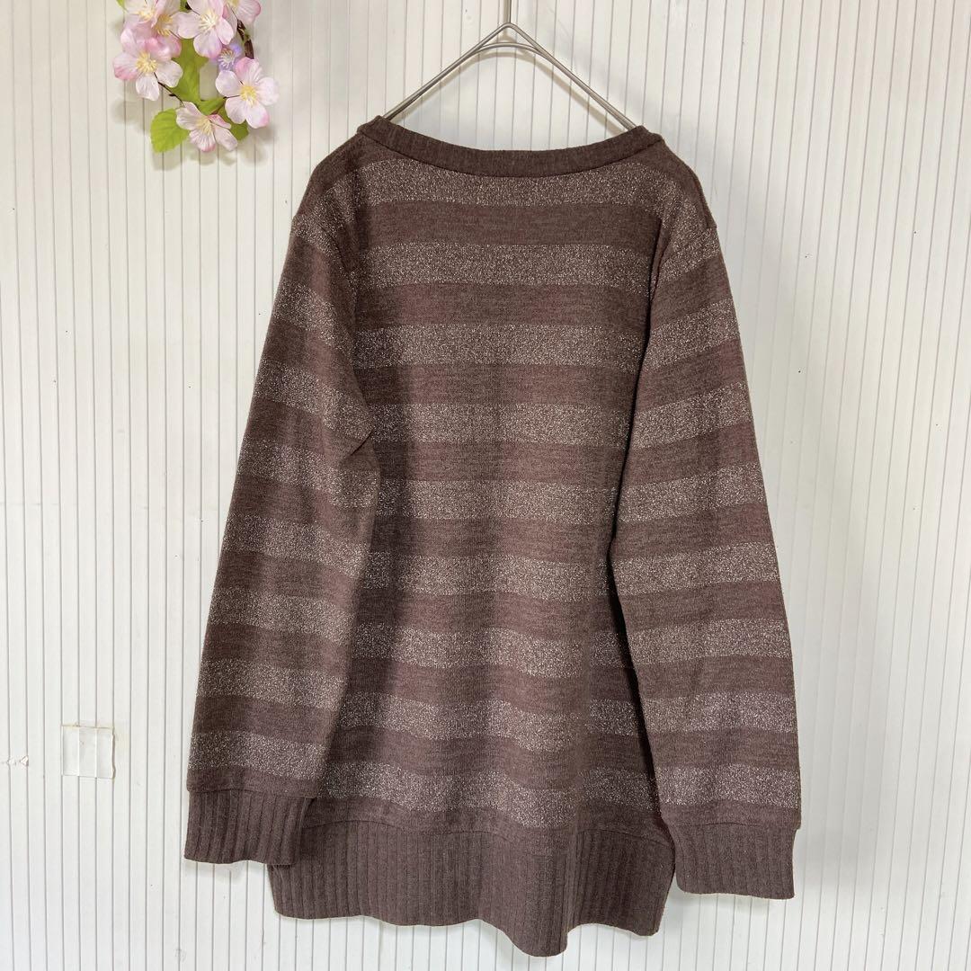 71-05 -大特価ー イトキン★ 【アーヴェヴェ】 ニット セーター (M) ボーダー ラメ 長袖 a.v.v レディース トップス ブラウン系 收藏