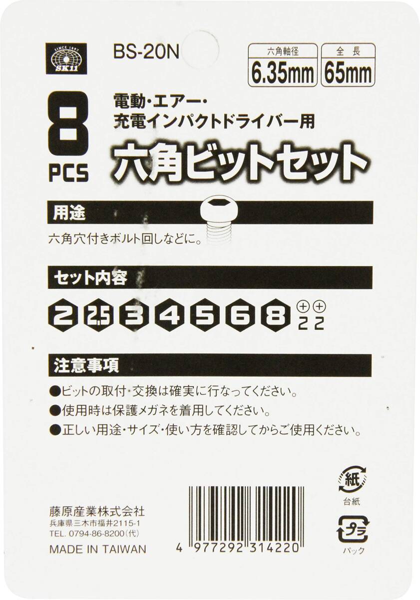 【特価商品】SK11(エスケー11) 六角ビット 8点セット 65mm BS-20N 六角軸 6.35mm 收藏