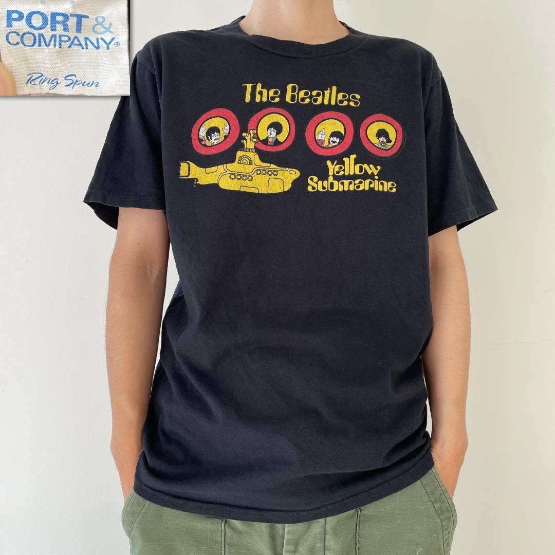 GG284 00s The Beatles Yellow Submarine ビートルズ イエローサブマリン ビンテージ 古着 ダブルステック Sサイズ Port & Companyタグ 黒T 收藏