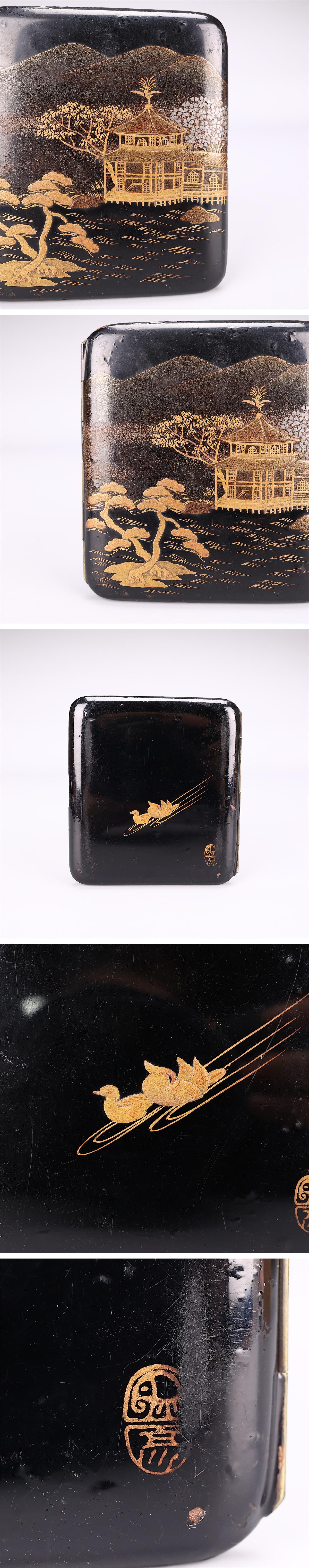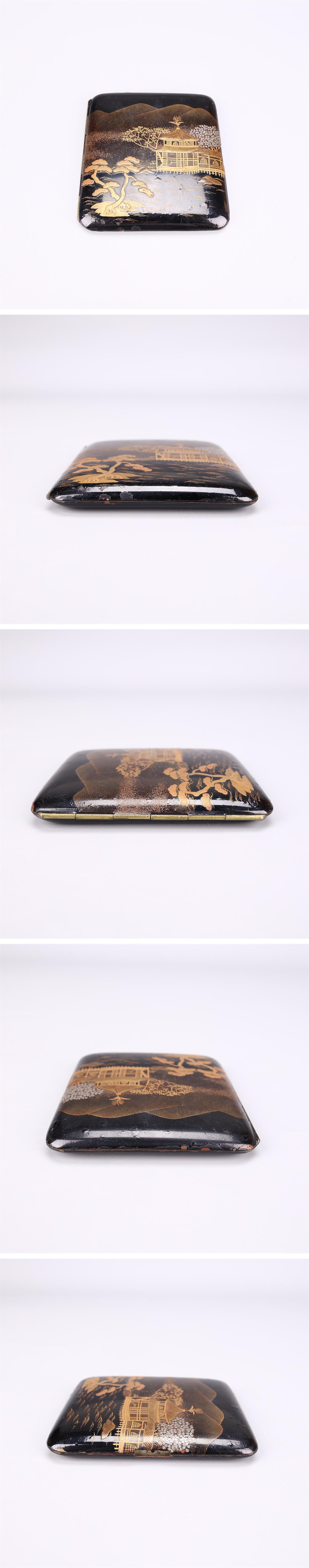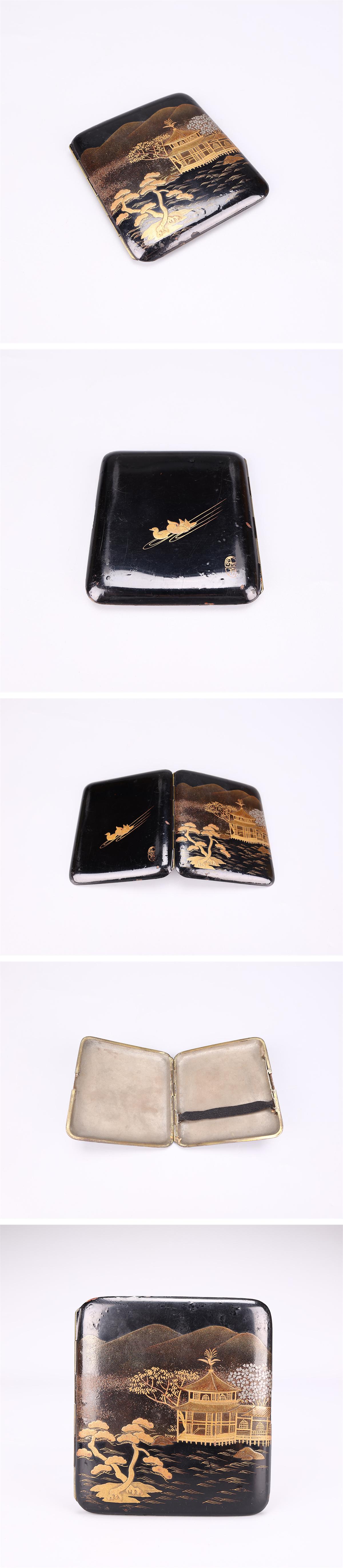 【吉】SA530 時代 【象彦 作】 真鍮製 金彩蒔絵山水紋 タバコケース/箱付 部品のかけあり! 收藏