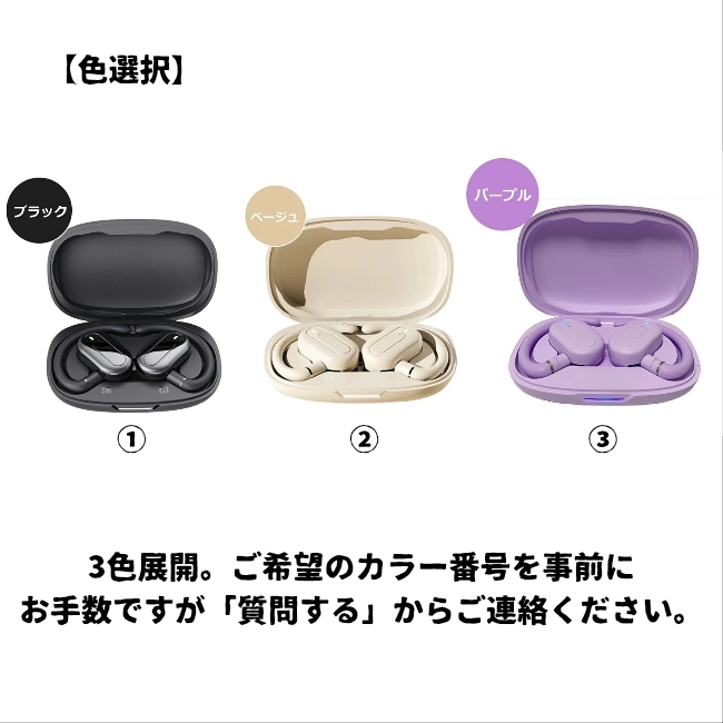 ご覧いただきありがとうございます。 3色展開です。 ご希望の色を事前に お手数ですが「質問する」からご連絡ください。 商品名:耳掛け式 ワイヤレスイヤホン 【この商品が品質で選ばれる理由】 長時間つけても耳が痛くならず、 スポーツ中でも外れにくいからです。 ■こんな悩みありませんか? ・イヤホンを長時間つけていると耳が痛くなってしまう。 ・運動中にイヤホンがずれたり、外れてしまったりする。 ・音漏れが気になって、周りの人に迷惑をかけていないか不安になる。 ★こんな時におすすめ! ・通勤や通学など、長時間音楽や動画を楽しみたいときに。 ・ランニングやジムでのトレーニング中も、 音楽を聴きたいときに。 ・ライブのような臨場感のあるサウンドを 体験したいときに。 ------------------------------------- 【素材と装着感】 ・柔らかい素材を使用しているため、 耳に優しくフィットし、快適な装着感です。 ・軽量設計により、 長時間着用しても耳が痛くなりにくいです。 ・耳にしっかりとフィットするので、 激しい動きでも外れにくいです。 【機能と利便性】 ・突然の雨や汗に強い防水性能を備えており、 安心して使用できます。 ・業界先端のBluetooth5.4を搭載しており、 安定した接続と高い音質を実現します。 ・タッチボタンで、 簡単に操作が可能です。 ご不明な点などございましたら お気軽に「質問する」からお問い合わせください。 |