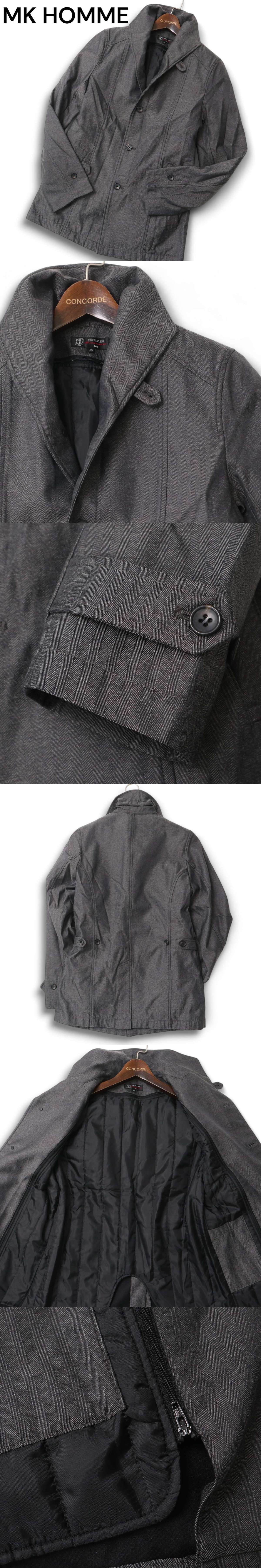 MK HOMME ミッシェルクラン オム 秋冬★ 中綿ライナーヘリンボーン イタリアンカラー コート Sz.46 メンズ 灰 グレー 收藏