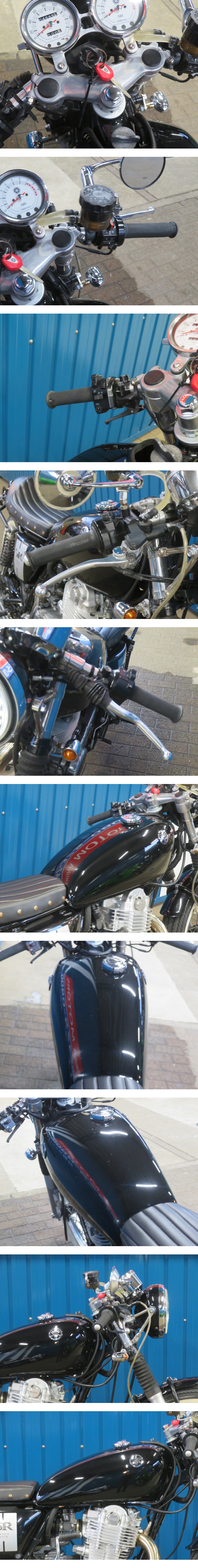 ■価格更新!!大幅値引き!!安心の工場ダイレクト販売!■テーパーコーン/ホワイトリボン/ヤマハ SR400 B0139 RH16J カフェ 黒 ベース車 收藏