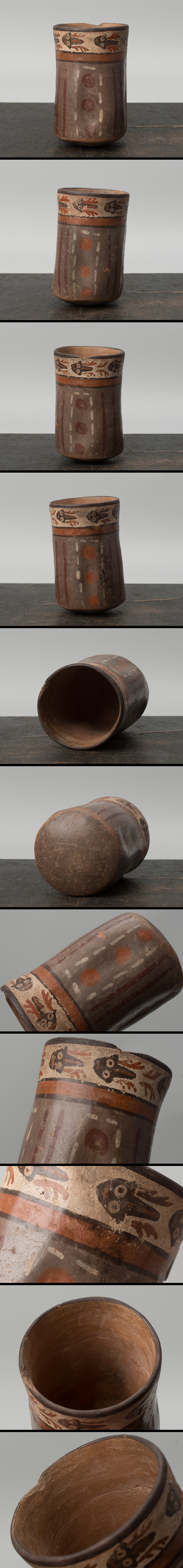 古代アンデス・ナスカ文化多彩鉢。箱無。 南米の土器やチャンカイ人形等をまとめて入手できましたので、他にも 成行で出品しています。合わせてご覧いただけましたら幸いです。 サイズは、幅約6cm、高さ約10cm。 くちに欠けがあります。 状態、詳細は画像でご確認ください。 今回成行で出品している南米の土器や人形等について、極力調べて タイトル・説明等記載しておりますが、当店、この分野について浅学で、 記載の誤りや不十分な点などもあると思います。 その場合は何卒ご容赦ください。 商品につきましては、画像でのご確認・ご判断をお願いします。 |