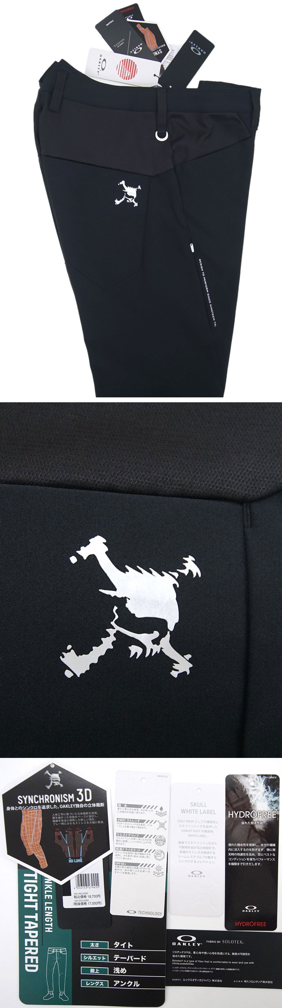 新品・未使用【オークリー OAKLEY】ゴルフ スカル プロ仕様ホワイトレーベル 3D立体裁断 ストレッチパンツ(ゴルフパンツ)(タグ付き)。