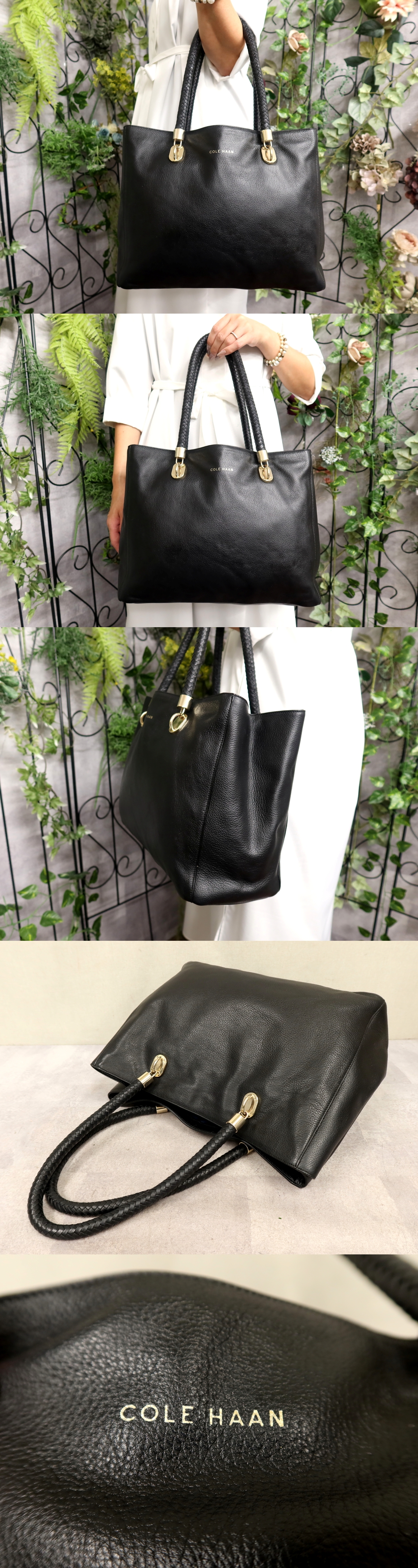 ●超美品●COLE HAAN コールハーン●カーフ レザー 本革●トート バッグ●黒●ゴールド金具●腕掛け●A4 書類●収納 かばん●Js61068 收藏
