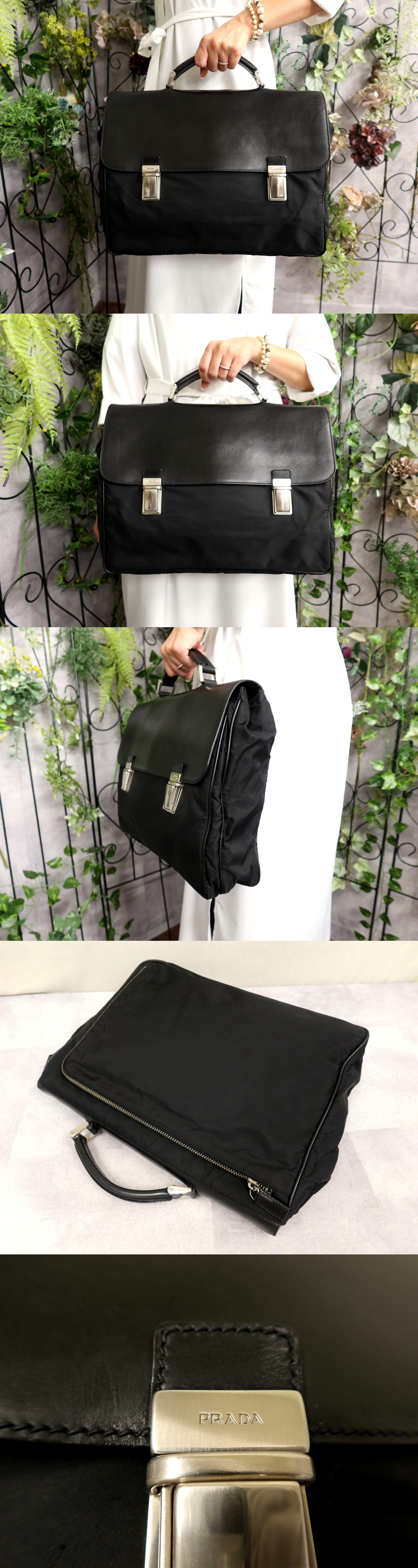 ●超美品●PRADA プラダ●メンズ●ポコノ ナイロン カーフ レザー●ブリーフケース●黒●SV金具●イタリア製●ヴィンテージ●A4●Js61187 收藏