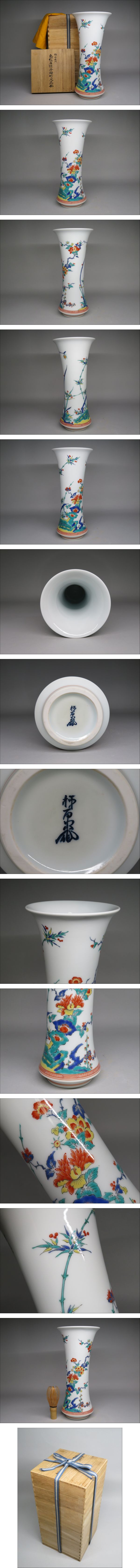 柿右衛門窯 柿右衛門 色絵岩牡丹梅竹文花瓶 柿右衛門様式 インテリア飾り花瓶 茶道具 lot:101201 收藏