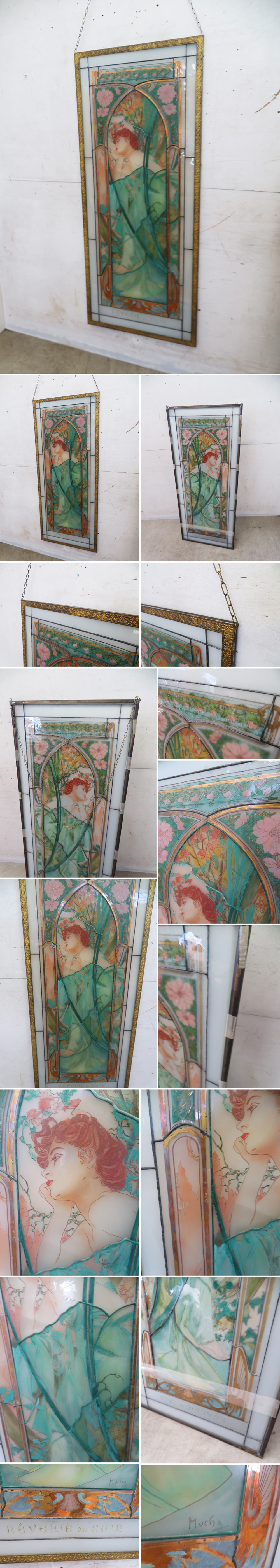 ■P140■美品■ミュシャ/ミュッシャ/Mucha■夕べの女神■ステンドグラスパネル■アール・ヌーヴォー■アンティーク/エレガント/クラシック 收藏