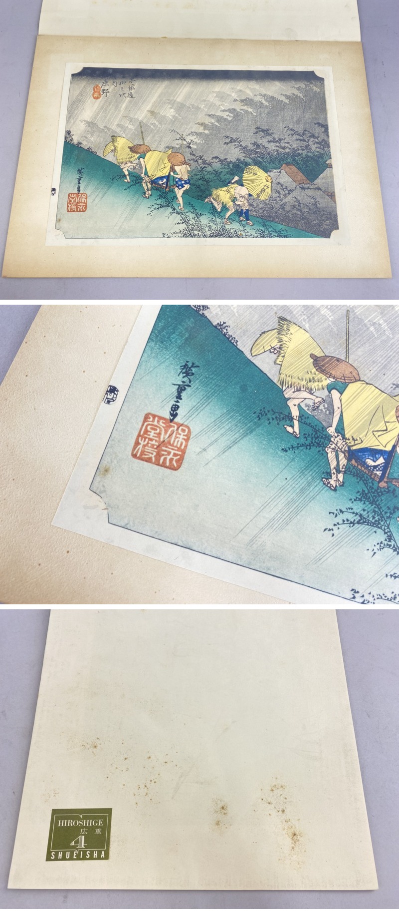 ◇商品情報◇ | 当店の商品をご覧いただきありがとうございます!! 集英社 浮世絵版画 全7巻 木版画 浮世絵 美人画 歌麿 北斎 春信 広重 清長 写楽 杉村 1枚抜けあり になります。 版画:スレ、うす汚れ、作品にシミがある物も中にはございますが、それ以外の作品はおおむね綺麗で、目立つ破れなどはなく、閲覧に問題はございません。 ケース:擦れ、汚れ、シミなどがございます。 外箱:シミ、汚れ、ヤケ、折れ、破れなどがございます。 ※2巻の北斎11番のみ欠品しております。 まとめて品のためサイズ感、状態などは画像を参考の上、ご検討をよろしくお願い致します。 ※まとめ出品の為、詳細な状態やサイズは記載致しませんのでご了承くださいませ。 ※目視チェックをしていますが、表記漏れや見落としや細かな擦れ・薄汚れなどがある場合もございますので予め画像をご確認の上でご入札をお願いいたします。 商品のトップ画像端に写っている茶筅はサイズ比較用の備品ですので付属はしません | ||||||||||||||||||||||||||||||