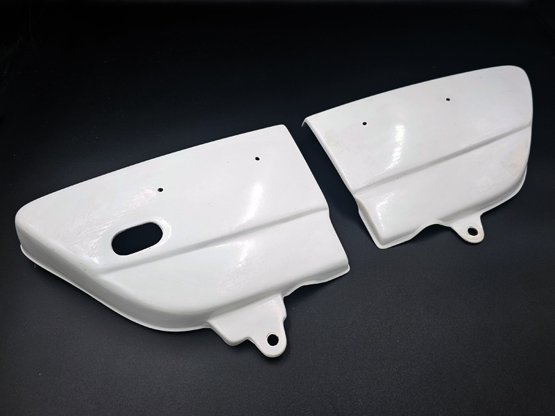 | 純正サイドカバーより型を起こして製作しました。 安価なFRPサイドカバーより厚みもあり強度を増し、画像5.6のようにフィッティングもバッチリです。 純正新品は廃盤のためペイントベースなどに是非どうぞ。 ※画像5.6は取付イメージです。エンブレムは付属しません。 ★☆サイドカバーステッカーセットはこちら☆★ ★☆こちらをクリック☆★ ■発送方法 ゆうパック80サイズ |