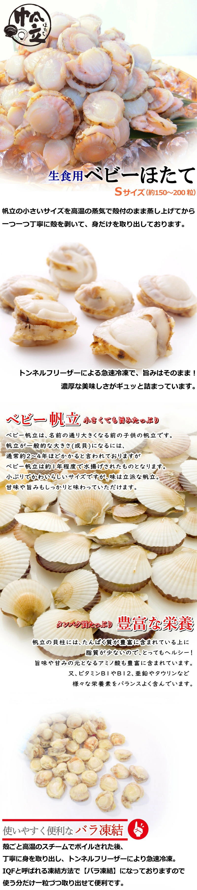 【Max】 ベビー帆立(S)1kg 約150-200粒入 生食用 ボイル加工済 極小サイズ ベビーホタテ 冷凍 ほたて ホタテ C 收藏