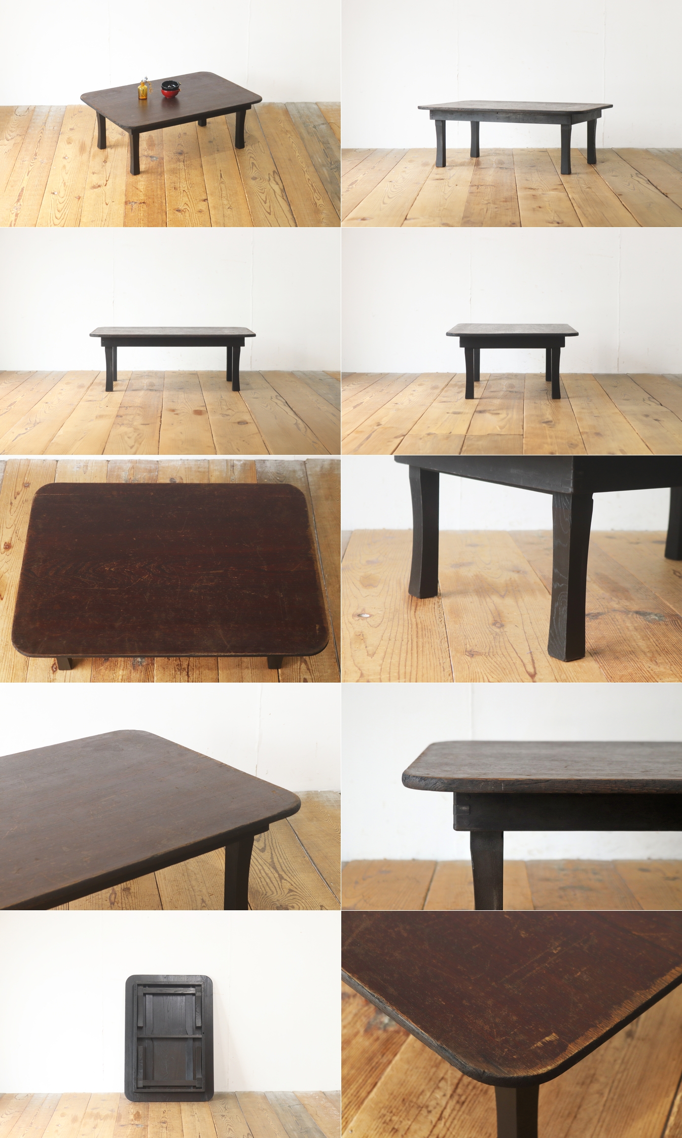 レトロ ちゃぶ台 座卓 机 ローテーブル テーブル 無垢材 ヴィンテージ/昭和大正骨董文机アンティーク/PIT09069 收藏