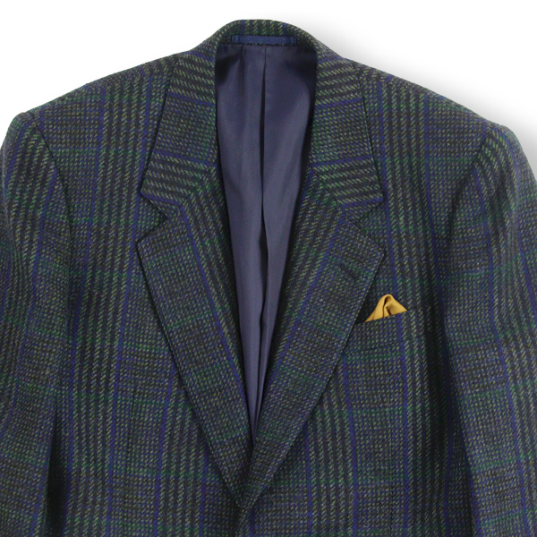 極美品 日本製 DARGENT イタリア Felra フェルラ社製 ツイードウール 刻印入り シェルボタン 2つボタン ブレザージャケット チェック L 收藏