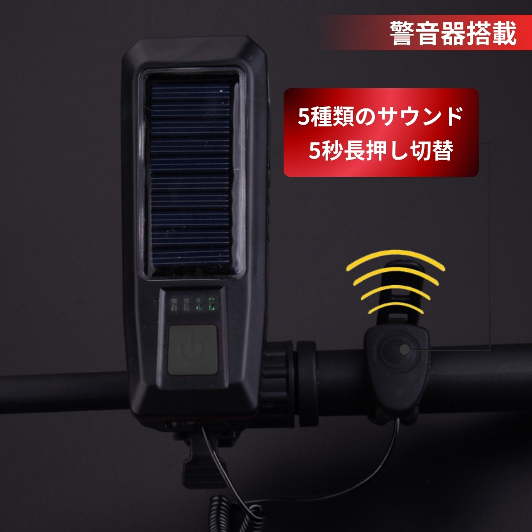 自転車 ソーラー 太陽光 充電 LED ライト ホーン USB 防水 バイク ヘッドライト 懐中電灯 マウンテン ロード 点滅 ベル 黒 長時間 ワイド 收藏
