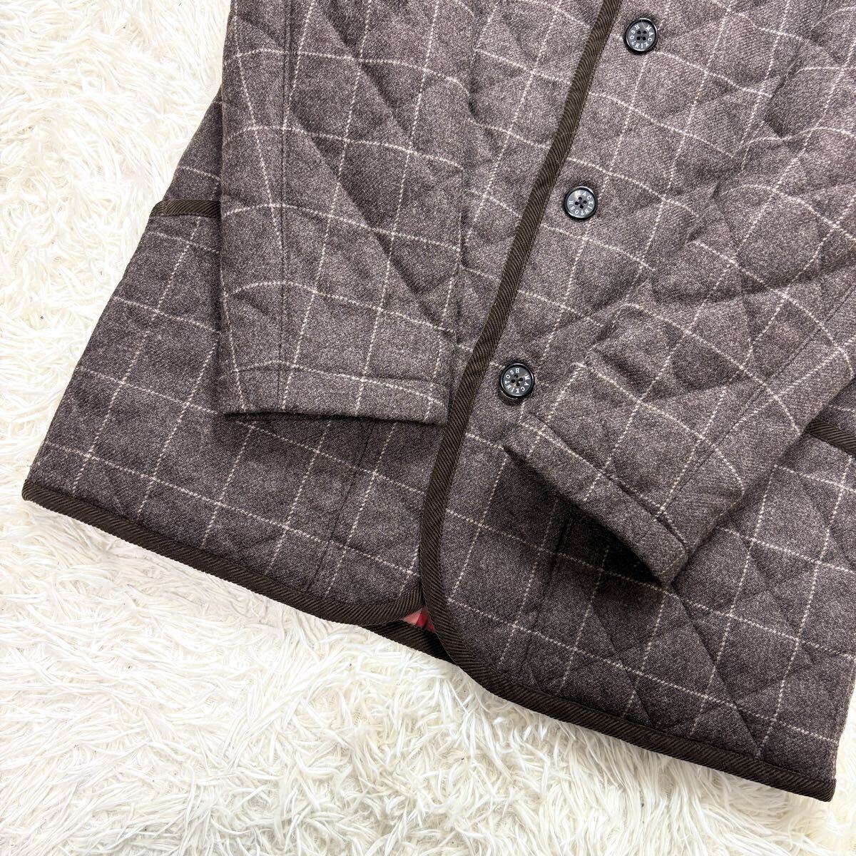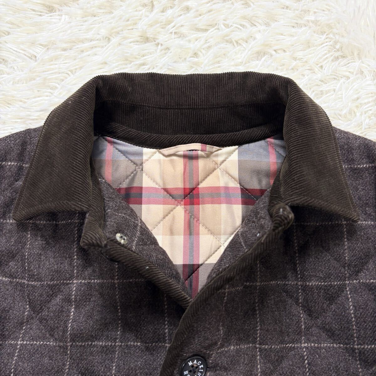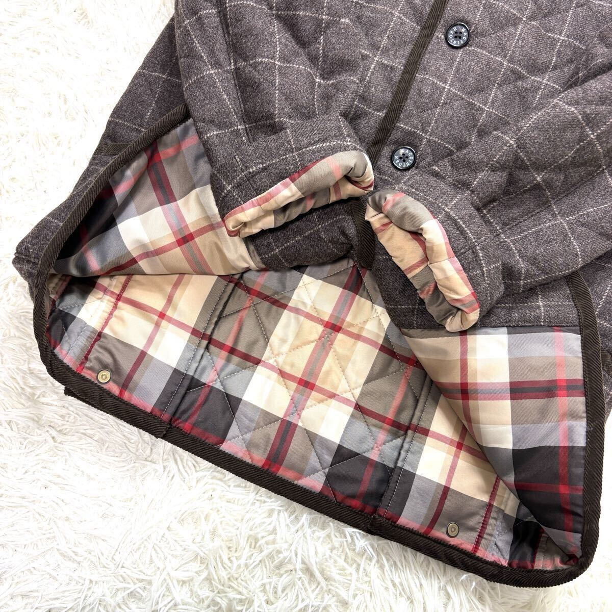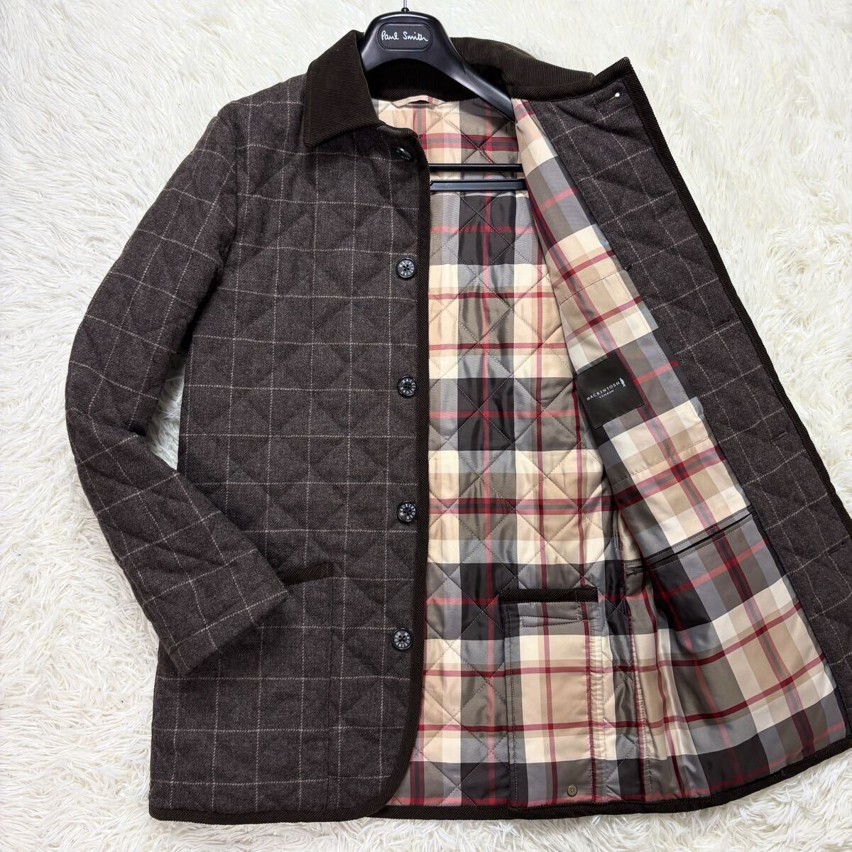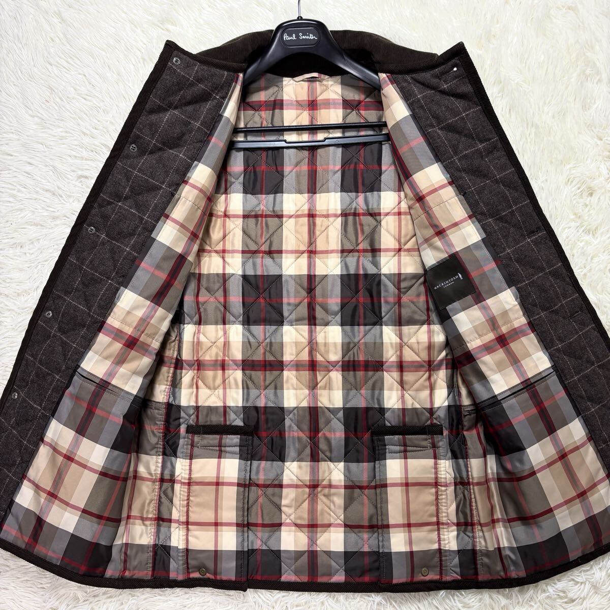 極美品/キルティング ●MACKINTOSH マッキントッシュ ステンカラーコート ロングコート ハウスチェック ウール Lサイズ ブラウン系 茶系 收藏