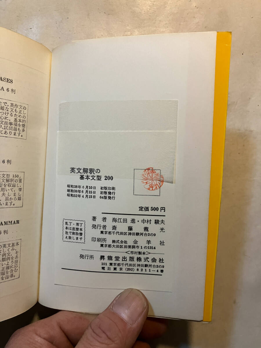 ●再出品なし 「200 BASIC ENGLISH FORMULAS 英文解釈の基本文型200」 海江田進/中村駿夫:著 昇龍堂出版:刊 昭和52年64版 收藏