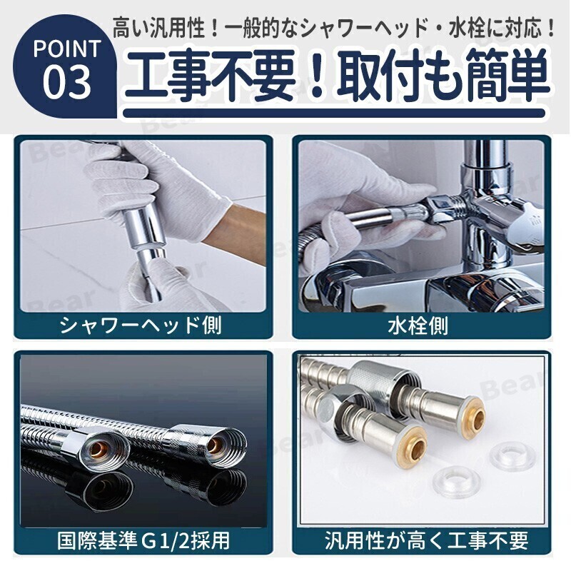 シャワーホース 1.5m 国際基準 汎用 G1/2 交換 ステンレス バス 防カビ シャワー ヘッド ホース SANEI INAX カクダイ LIXIL TOTO 風呂 浴室 收藏