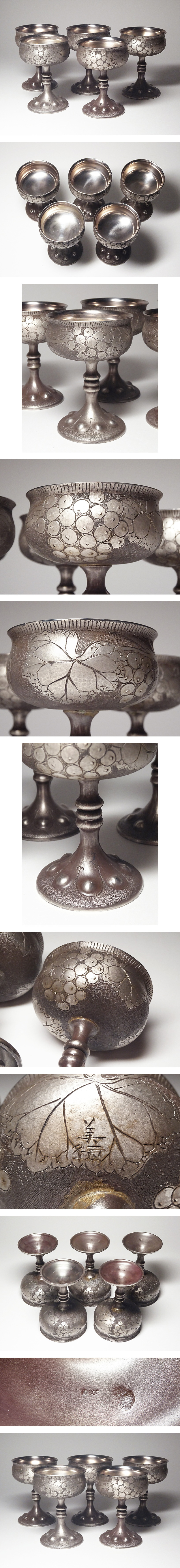 慶應◆文化勲章【帖佐美行】作 銀製葡萄図ワイングラス5客 870g 酒器 收藏