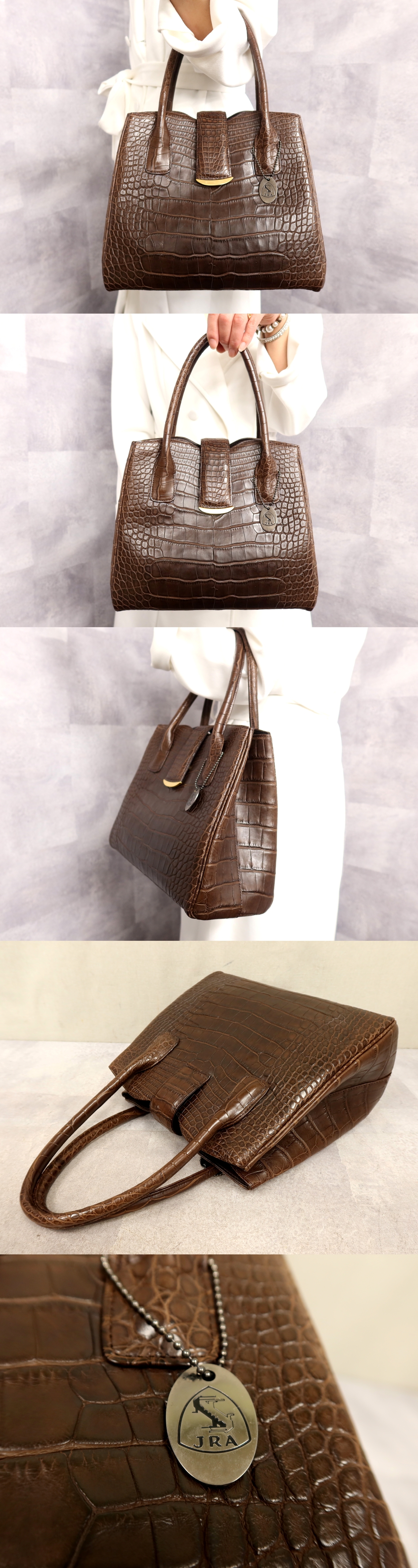 ●超美品●iii sanpo 三宝●JRA認定●クロコダイル 本 ワニ 革●ハンド バッグ●ブラウン●ゴールド金具●腕掛け●かばん●Js62219 收藏