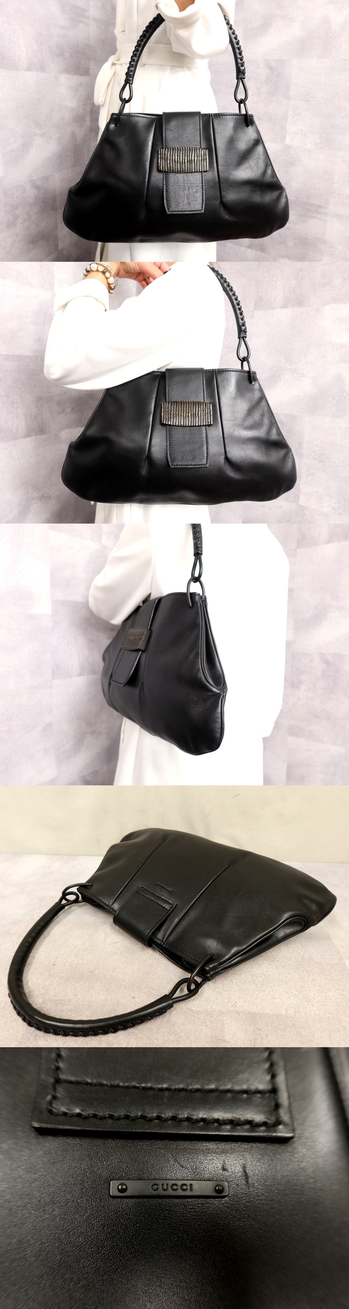 ●超美品●GUCCI グッチ●ロゴ型押し●ワンハンドル●カーフ レザー 本革●ハンド バッグ●黒●イタリア製●肩掛け●かばん●Js62200 收藏
