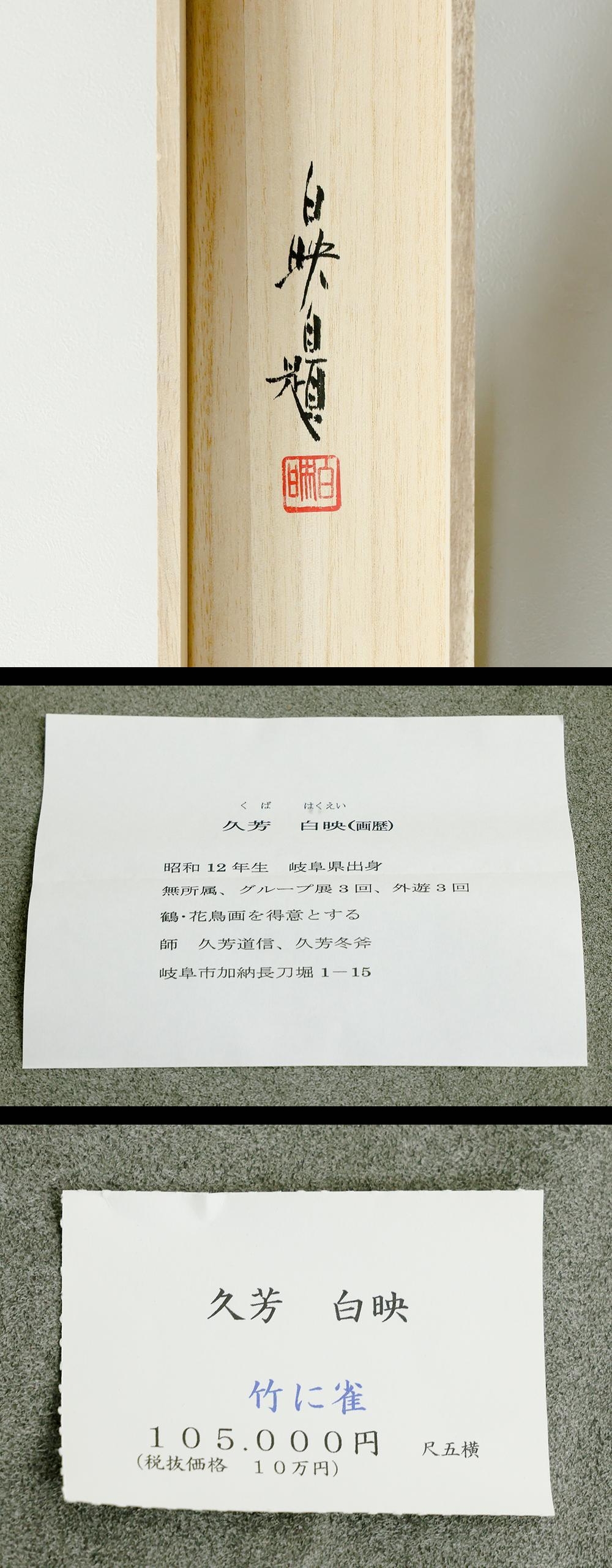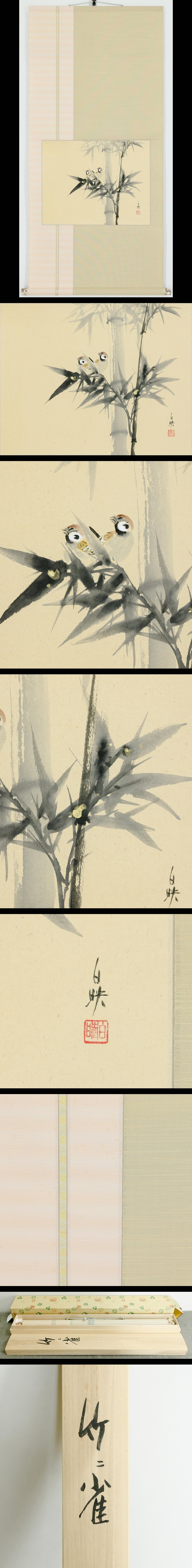 【真作】【WISH】久芳白映「竹ニ雀」日本画 金泥仕様 掛軸 共箱 気品漂う竹と雀の調べ 〇師:久芳道信・久芳冬斧 #25100065 收藏