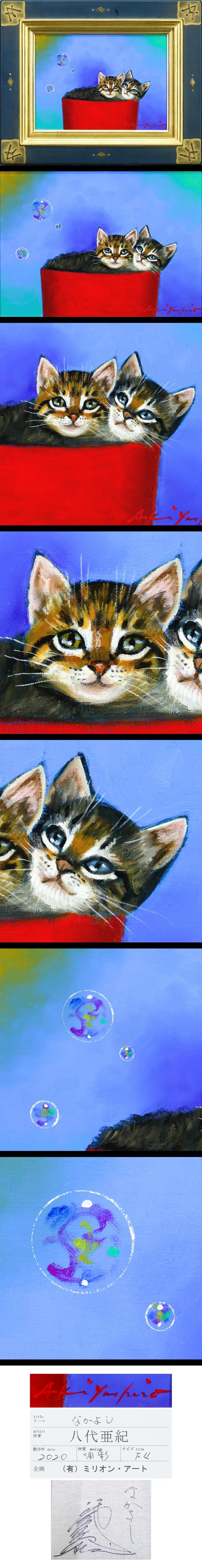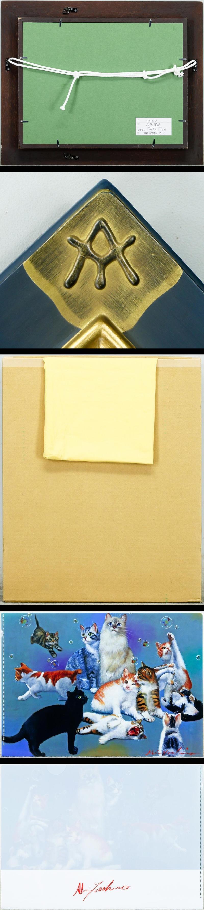 【真作】【WISH】八代亜紀「なかよし」油彩 4号 2020年作 オリジナル額装 証明シール ◆愛らしい猫図・貴重名画 #25112282 收藏