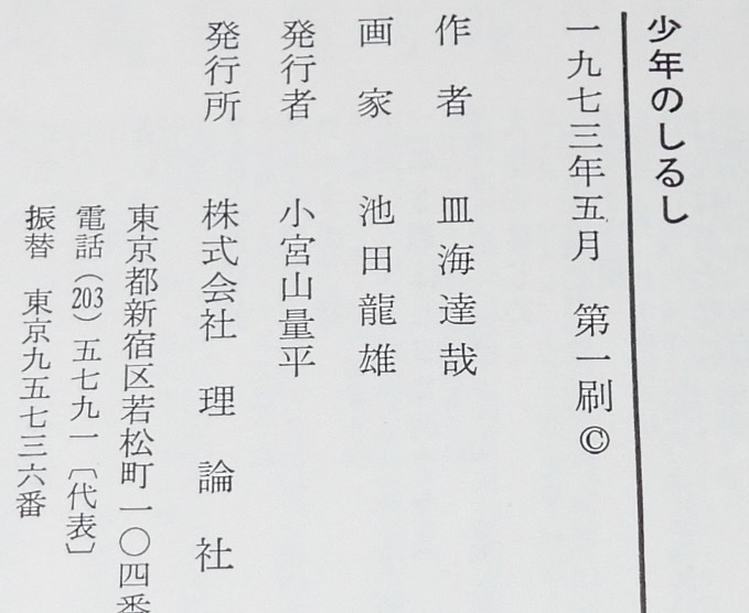ジュニア・ライブラリー 少年のしるし 皿海達哉 理論社 1973年5月第1刷 A5判ハードカバー.