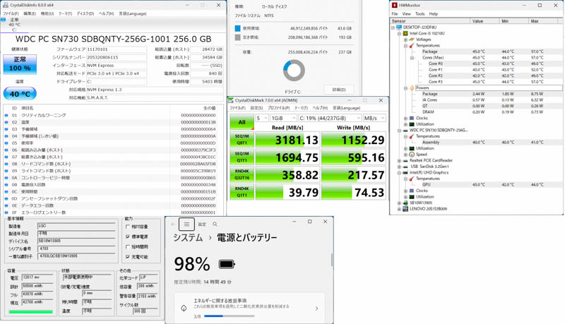 ストレージはM.2 2280 NVMe SSD( WDC PC SN730 SDBQNTY-256G-1001 ) を搭載