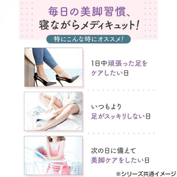 | はくだけで脚をキュッとひきしめ軽くする。寝るときに適した低めの着圧値で効果的にひきしめ、翌朝の脚をすっきりさせます。ショートタイプなので、ふくらはぎを集中ケアします。足首は寝ている姿勢にあわせたフラット設計。つま先なしなので、お休み中の熱を発散します。幅広リブでずれにくく、寝返りを打っても安心です。また、コットンフィールの新素材により、着圧はそのままにやわらかな肌ざわりを実現しました。 【使用上の注意】 1.重度の血行障害がある方は使用しないでください。 2.次の方は着用前に医師にご相談ください。糖尿病、深部製脈血栓症、血行障害、うつ血栓心不全、炎症性疾患、装着部位の神経障害などで治療を受けている方。 3.着用にあたり、次のことを注意してください。 (1)サイズが合わないものや2枚重ねての着用はしないでください。 (2)使用中にしわやたるみができないようにしてください。 (3)ひざ下、ひざ裏で生地が丸まらないように伸ばしてください。口ゴムは折り返さずまっすぐのままはいてください。 (4)気分が悪くなったり、痛みやしびれなどの不快感、かゆみ、発疹等異常を感じたばあいは直ちに使用を中止してください。 (5)製品の変形を防ぐために、ねじれた状態でのご使用や保管をしないでください。 ※妊娠中の方は、着用を始める前に医師に相談されることをお勧めいたします。 ※妊娠中の合併症を伴う方は、着用前に必ず医師にご相談ください。 ※妊娠中、本品を着用し異常を感じた場合はすぐに専門医にご相談ください。 【使用方法】 ・着用前に指輪等をはずし、手足の爪をなめらかにしてください。 ・爪を立てたり、一気に引き上げないでください。 ・サポートカがあるため、注意しながらゆっくり引き上げてください。 |
