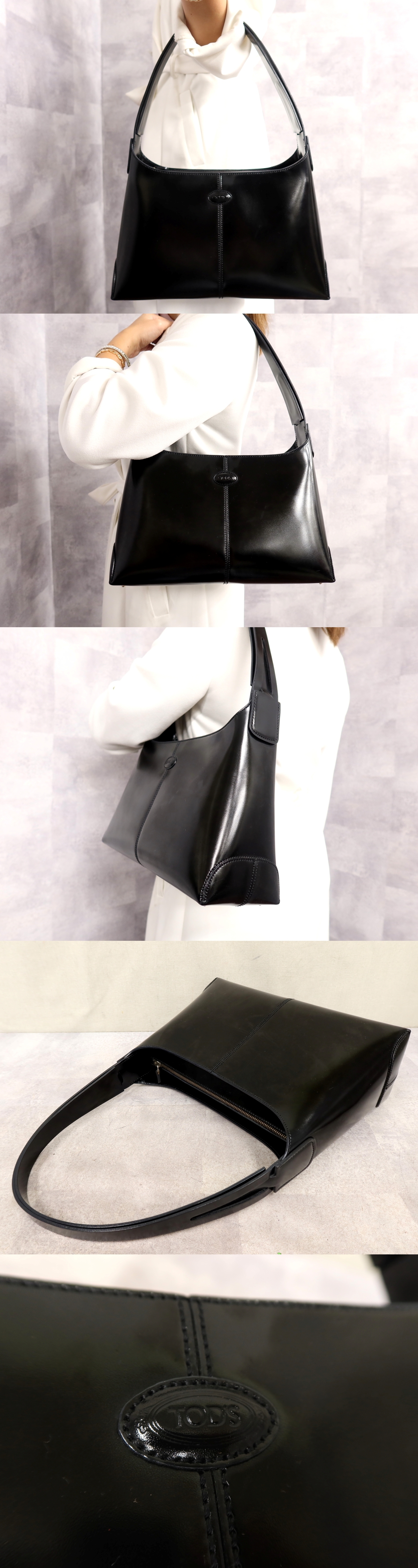 ●超美品●TODS トッズ●ロゴ型押し●カーフ レザー 本革●ショルダー バッグ●黒●シルバー金具●肩掛け●収納 かばん●Js63002 收藏