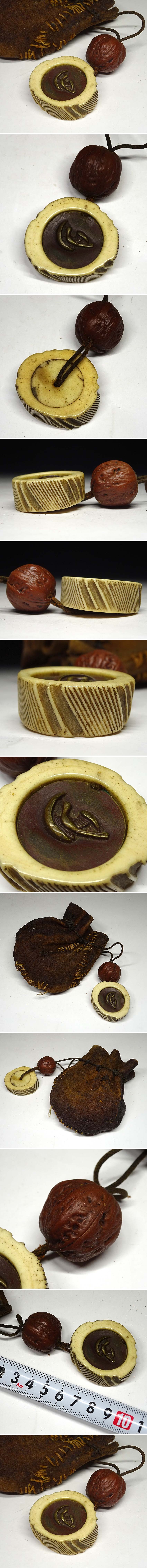 緑屋t■ 時代物 一角角 ウニコール 根付 木実 緒締玉 古民具 i9/12-6135/29-6#60 收藏