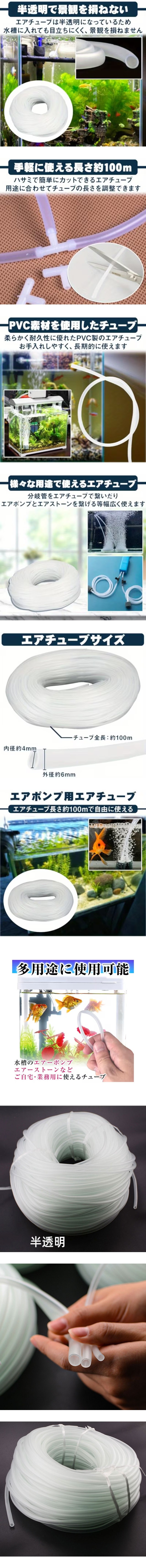 エアーチューブ ソフトチューブ シリコン ホース エア チューブ 半透明 水槽ポンプ 熱帯魚 メダカ 稚魚 シュリンプ エアーストーン 100m 收藏