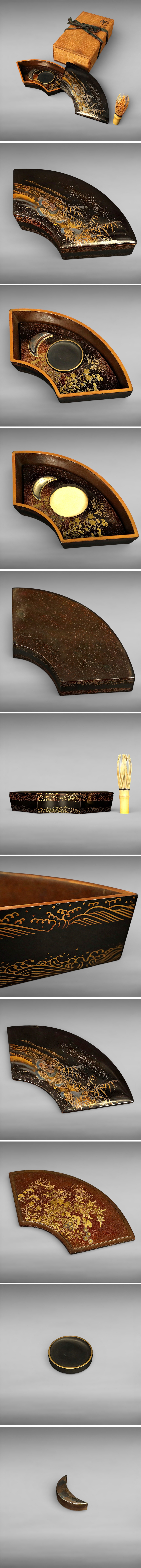 江戸期 扇面御硯箱 芦雁蒔絵 円硯 水滴 箱 書道具 漆芸 漆器 古美術 骨董品 9406vbxN 收藏