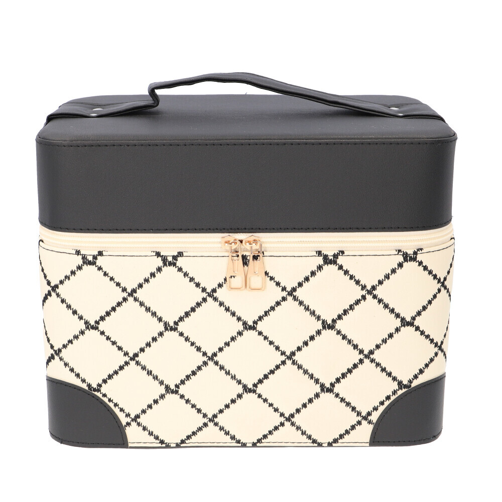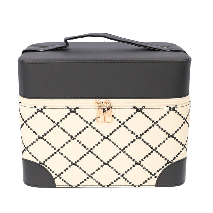 ☆ ベージュ×ブラック ☆ メイクボックス pmymake008 メイクボックス 大容量 コスメボックス バニティケース 化粧品 収納 ボックス 收藏