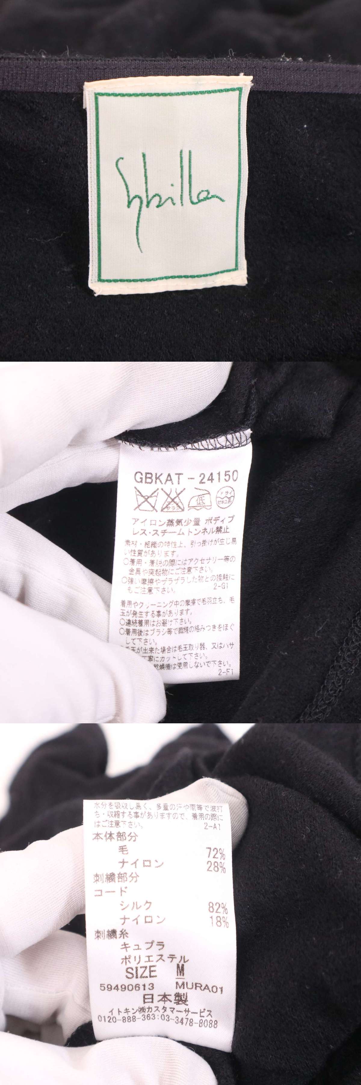 Sybilla シビラ 秋冬★ フラワー刺繍 ウール プルオーバー トップス カットソー Sz.M レディース 黒 日本製 收藏