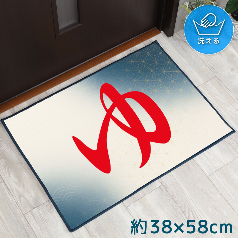 玄関マット 室内 おしゃれ 洗える 約38×58cm キッチンマット アクセント マット 転写プリント 温泉 風呂 入口 TEN176 和柄1 ゆ レッド 收藏