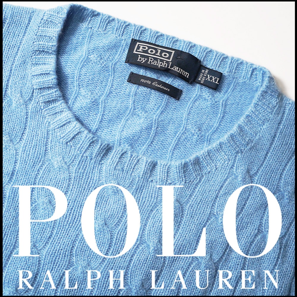 美品【 RALPH LAUREN ラルフローレン 】極上カシミア100%素材/保温性抜群/ケーブル編みクルーネックニットXXL 收藏