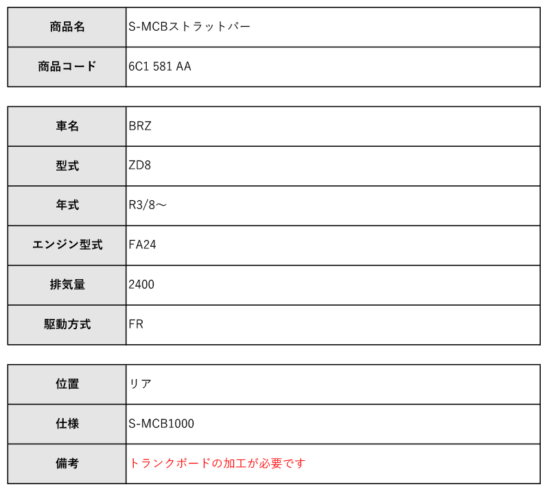 [CUSCO]ZD8 BRZ(R3/8~)用S-MCBストラットバー[リア][S-MCB1000仕様][6C1 581 AA] 收藏