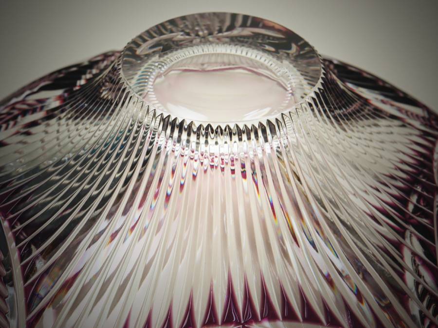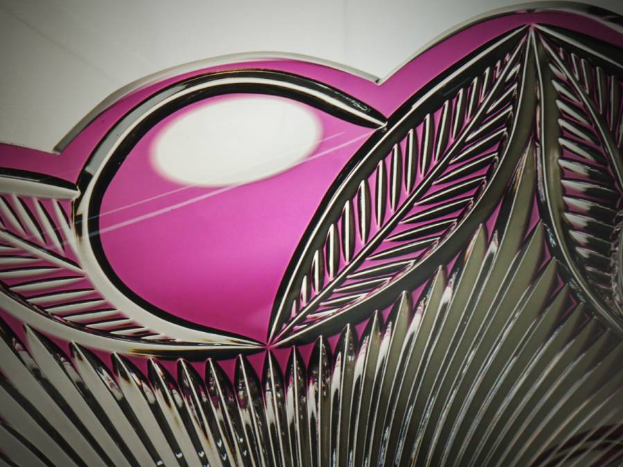 nQT5 Bohemian Glass BELLE パープル フルーツボウル|27cm 果物鉢 花生け 箱付 未使用 收藏