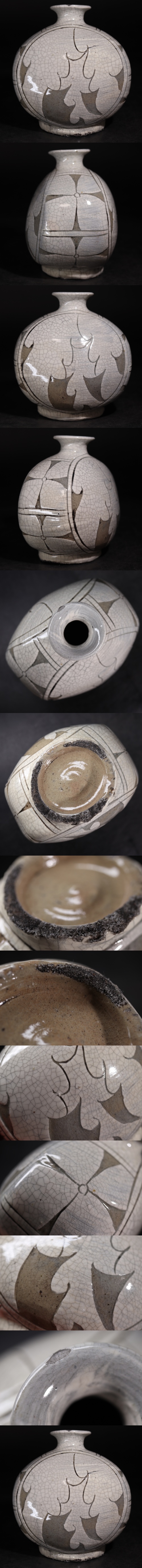 | 時代 李朝 粉青沙器 落 扁壺 / 朝鮮古美術 壺 花瓶 検索: 鶏龍山 .G3787 |