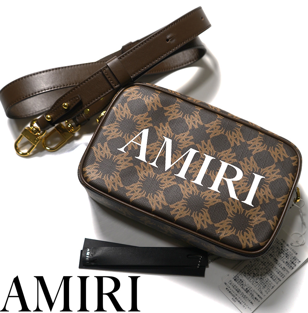 定価13.2万/新品【 AMIRI アミリ 】イタリア製/Quad Leather Trim Monogram Coated Canvas Camera Bag /モノグラムカメラバッグ/ブラウン 收藏