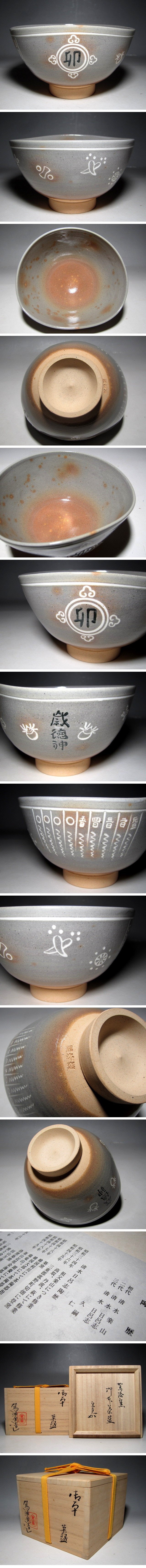 駕洛窯 清水日呂志 御本写茶碗 堀内流十二代 兼中斎 宗完花押 e266 收藏