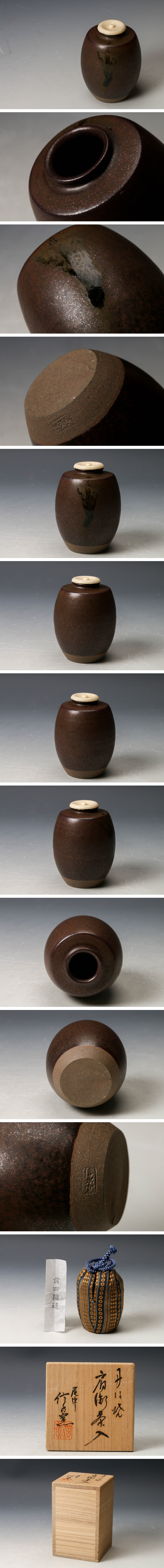 【佳香】市野信水 尾中窯 丹波焼肩衝茶入 共箱 仕覆(前田間道) 茶道具 本物保証 收藏
