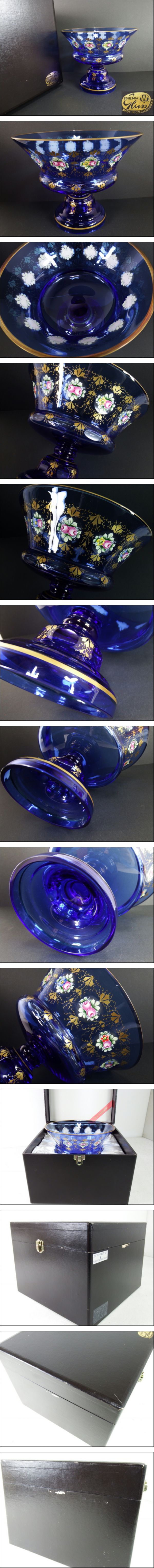 ■■BOHEMIA ボヘミアガラス エナメル彩 コンポート フルーツボウル 金彩/花絵 共箱■■ | |||