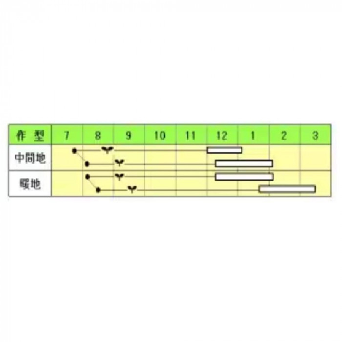 | 定植後90日で1.5kg、120日で2~3kgに太る、高収量の寒玉系キャベツです。草姿は半開張性で草勢はやや強く、低温肥大性に優れます。球は鮮緑色の扁円形で玉揃い良く、締まり良く、球芯は小さく伸びも遅いです。裂球が極めて遅く、在圃性に優れます。育苗時の耐暑性、本圃での耐寒性強く、萎黄病・黒腐病にも強く栽培容易です。 【注意事項】 ※種子は播種後の栽培条件、天候事情により、その結果が異なる場合がございます。 万が一、結果不良でも保証はできかねます。 |