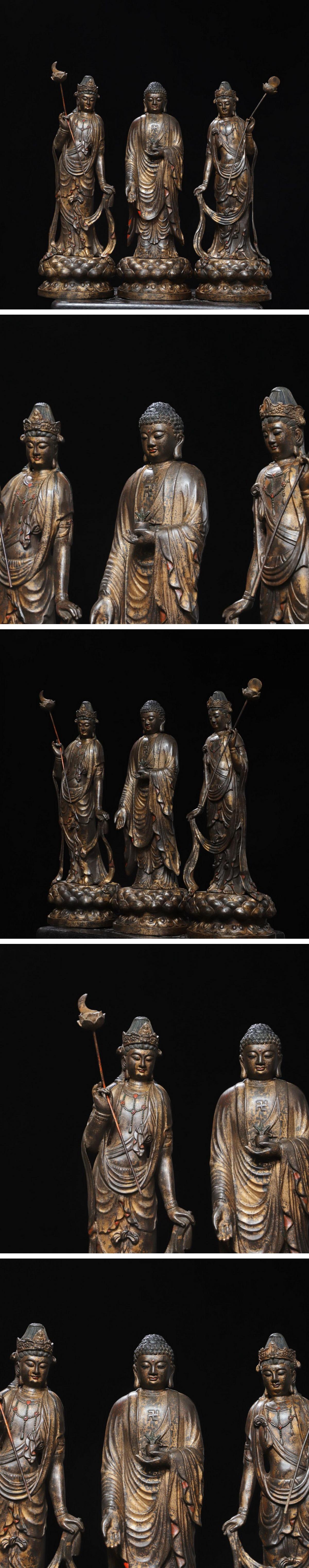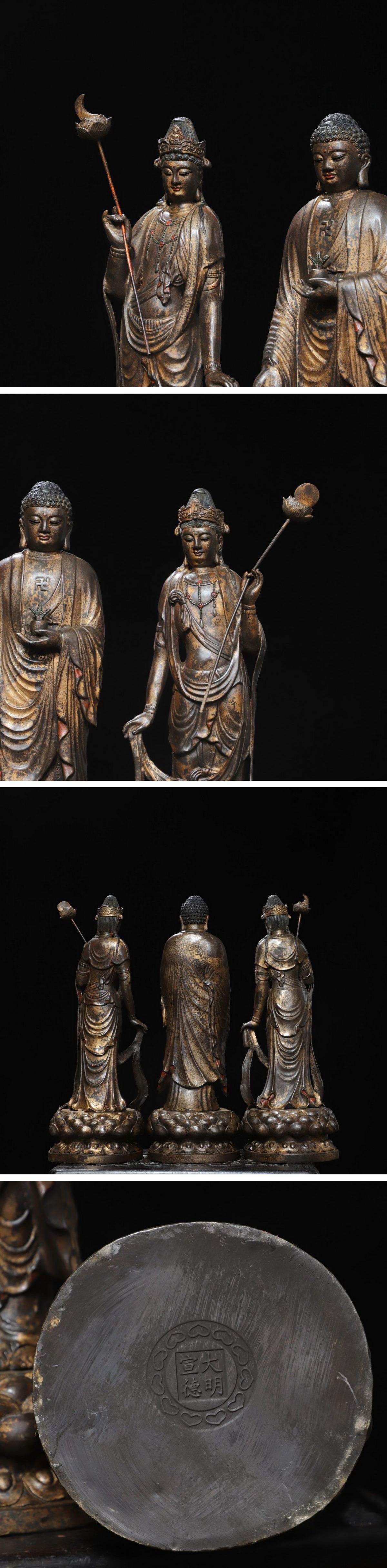 【雲錦】1円から 時代物 銅金 釈迦三尊造像 仏教古美術 中国骨董品 古美術 骨董品8L0-28S7 收藏